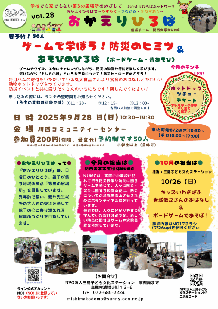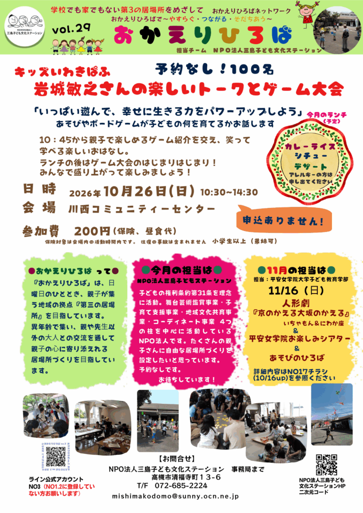 おかえりひろば9月&10月のお知らせ