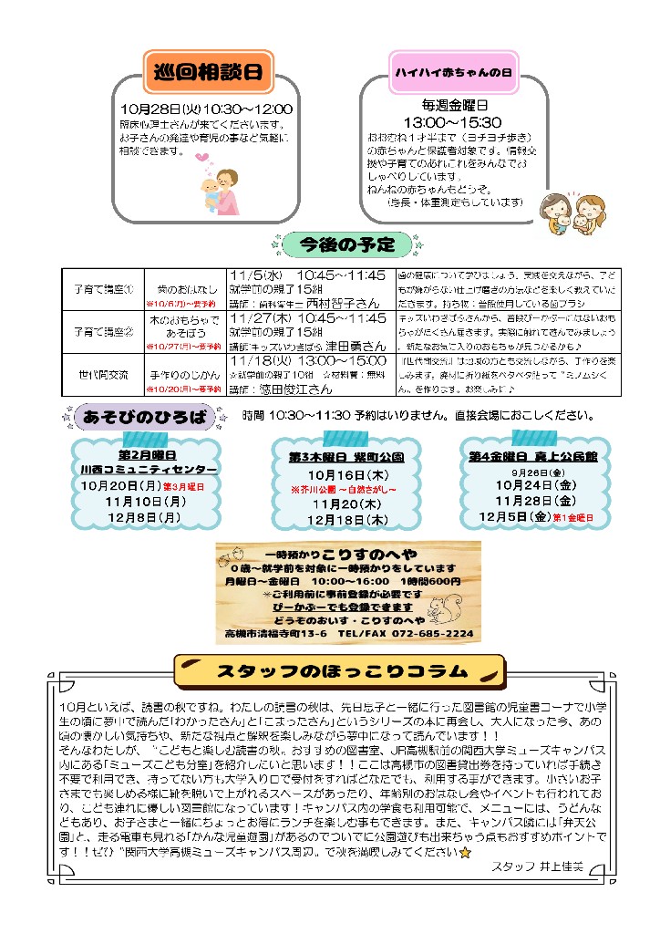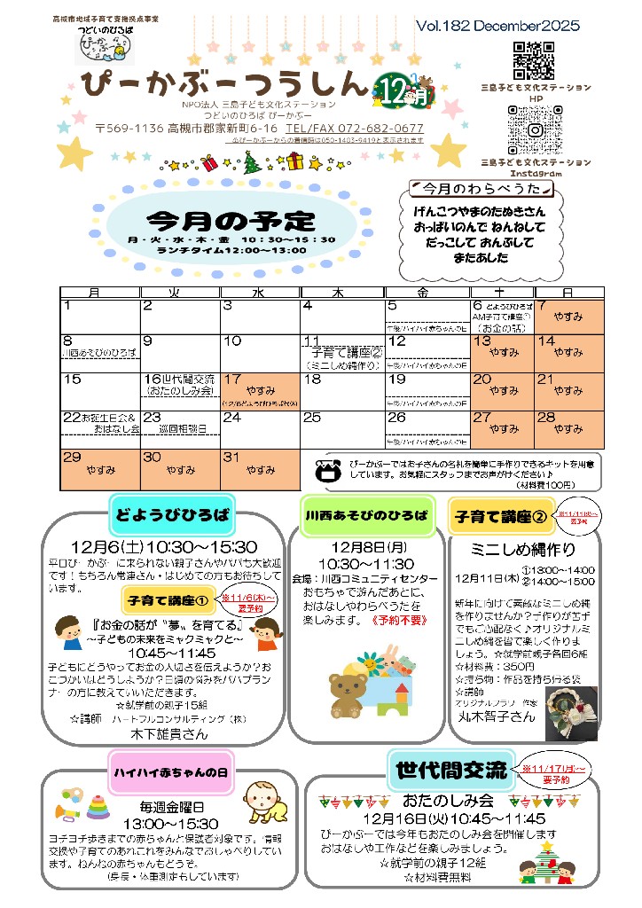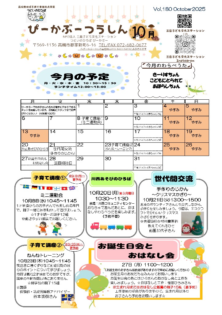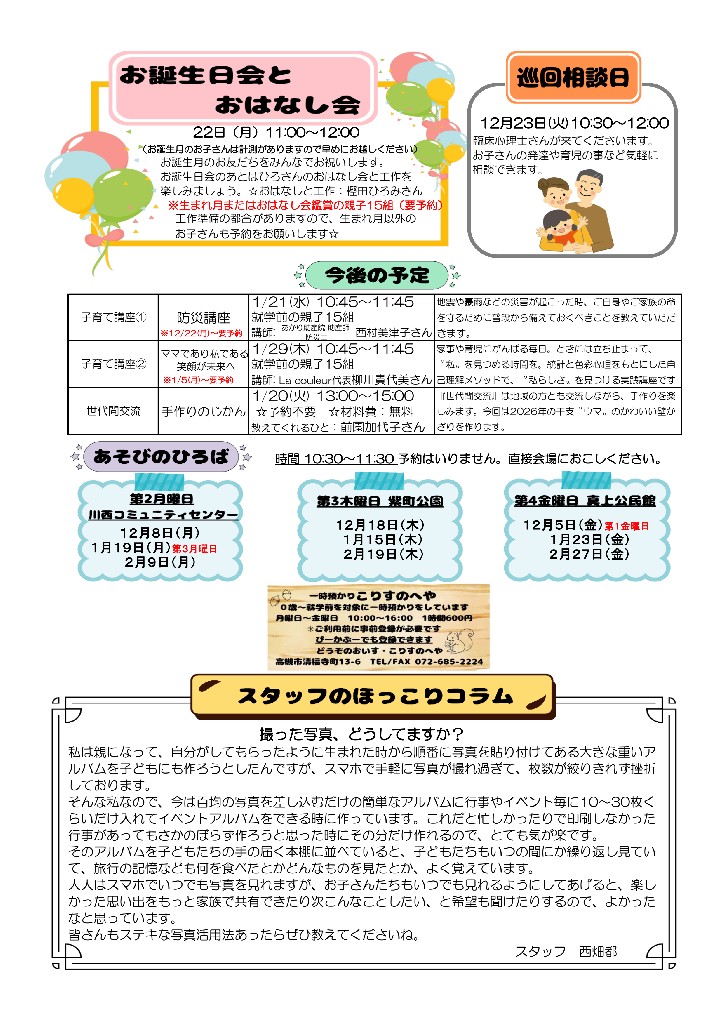 共に育ちあい、親同士が交流できる広場を目指し、お誕生会やお話し会などの行事も計画しています。